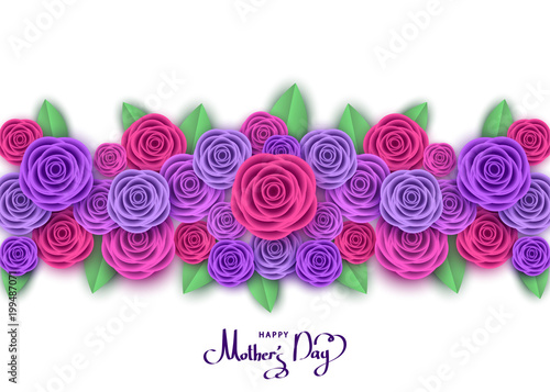 Portrait of beautiful young girl with floral hair. Vector paper cut profile view illustration.