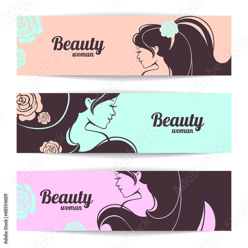 Beauty salon landing page website template. Vector paper cut beautiful girl with long wavy hair. Beauty and fashion, body care and hairstyles concept.