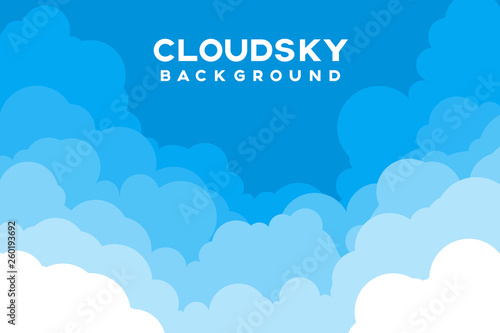 Daylight sky with sun, white clouds, flying hot air balloons, cityscape and copy space. Vector illustration in paper art style. Cityscape background, poster, flyer, banner template.