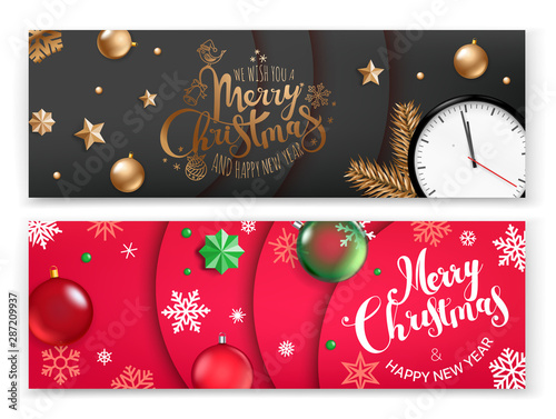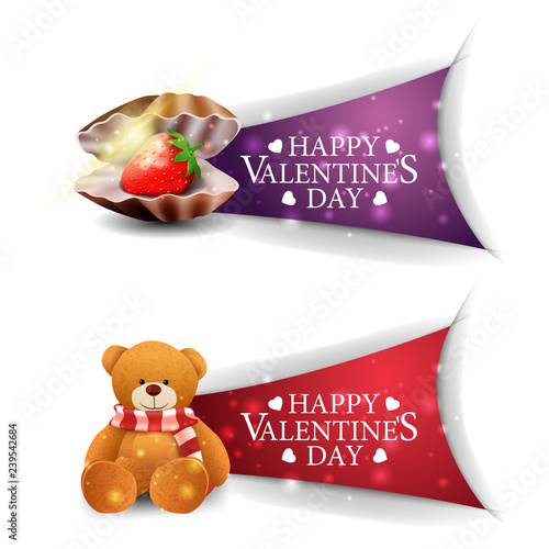 Vector set of fruit banners with paper cut ripe fresh yellow pear and purple plum fruits.