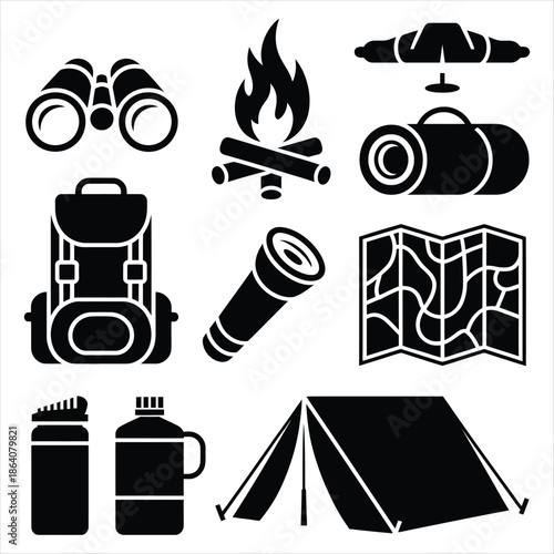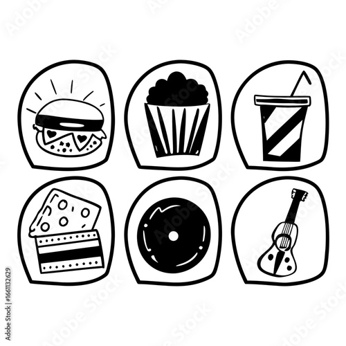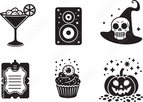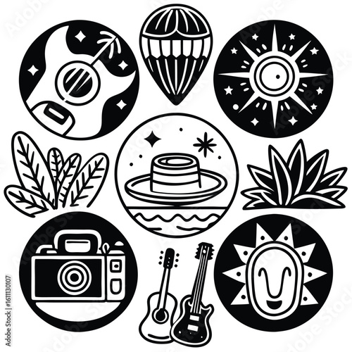 Vector party set of emblems, badges, stickers or banners. Design elements in vintage style. Black icons and logo isolated on white background.