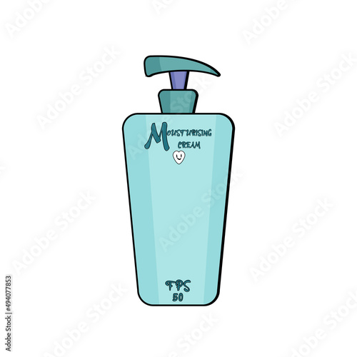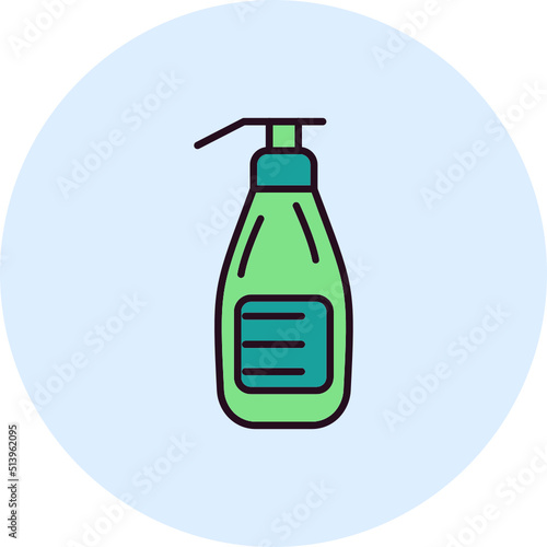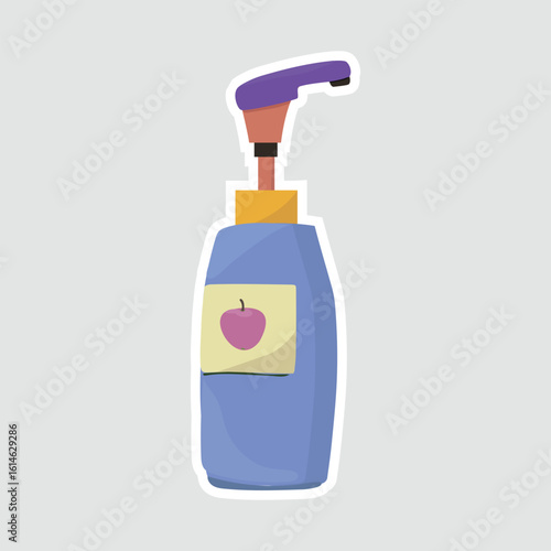 Vector soap bottle. Pet flask with dispenser icon illustration. Dog and cat paw care accessory isolated on white background. Animal grooming and hygiene
