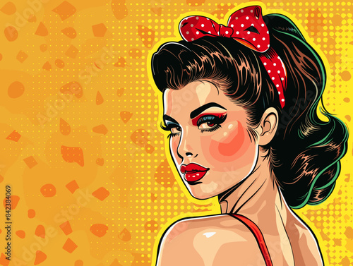 Vector illustration of happy surprised young woman and gift boxes around her in retro pop art comic style.