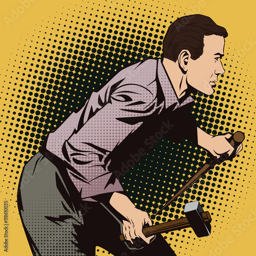 Vector illustration of pretty woman with curly afro hairstyle, speech bubble. African american woman with bag in retro pop art comic style.