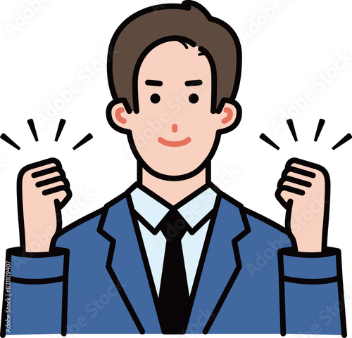 Vector illustration of amazed businessman with arms raised, speech bubble. Surprised man in pop art retro comic style.