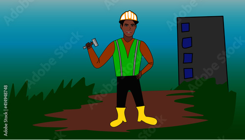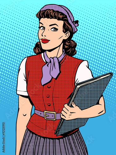 Vector illustration of businessman holding laptop. Gadgets modern technology concept in retro pop art comic style.