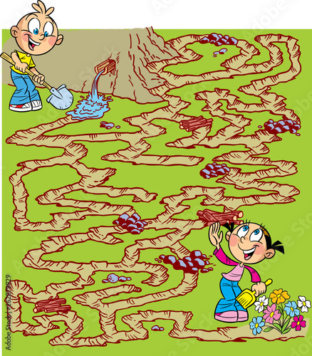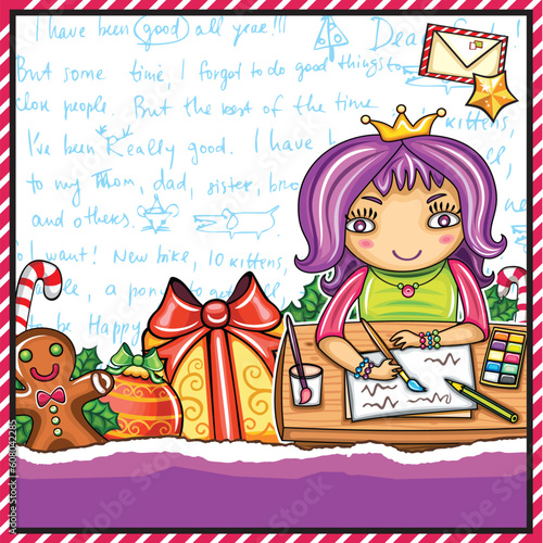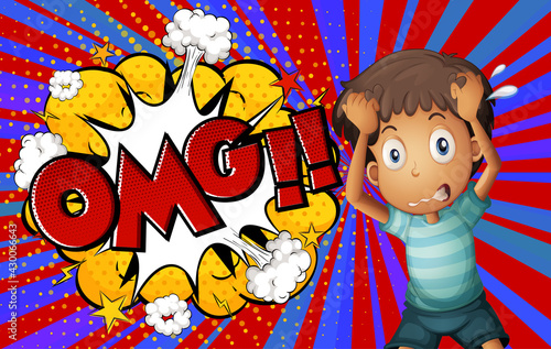Vector illustration of baby girl sitting at the table and painting the sun in bright yellow color, retro pop art comic style.