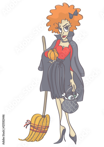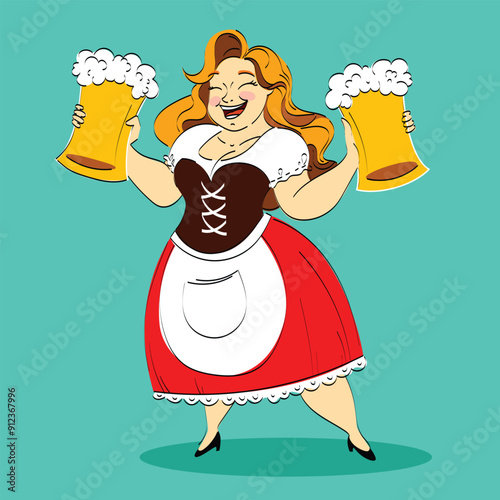 Vector illustration of pretty girl waitress with beer and fish. Oktoberfest beer festival concept in retro pop art comic style.