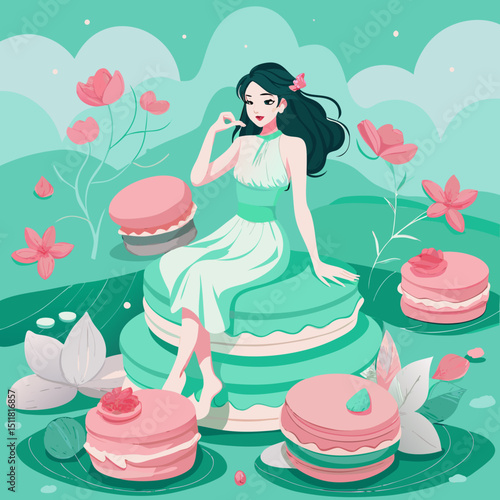 Vector illustration of girl in hat with her dog pet. Portrait of elegant girl with little dog in retro pop art comic style.