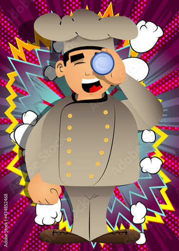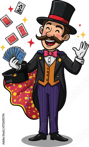 Vector illustration of magician performing trick. Illusions magic show or circus show design element in retro pop art comic style.