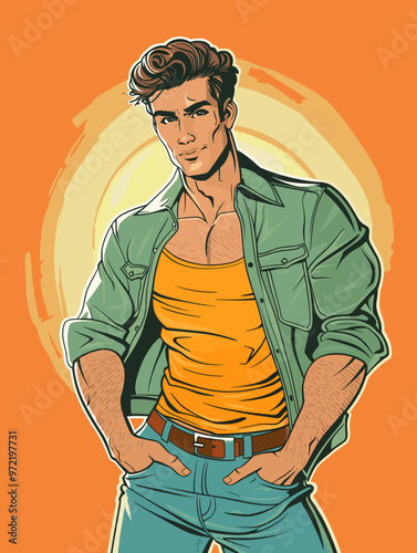 Vector illustration of pregnant woman and her husband. Loving happy couple in retro pop art comic style