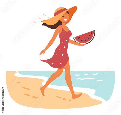 Vector illustration of pretty woman sitting on the crescent. Dreaming girl with book in retro pop art comic style.