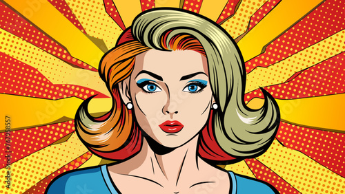 Vector illustration of beautiful girl thinking about something, thought bubble. Sad woman portrait in retro pop art comic style.