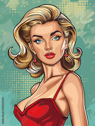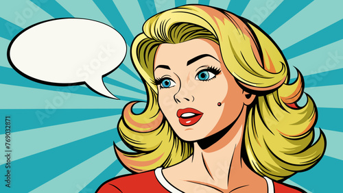 Vector illustration of young woman with shocked expression on her face. Girl with cutting hair in retro pop art comic style.