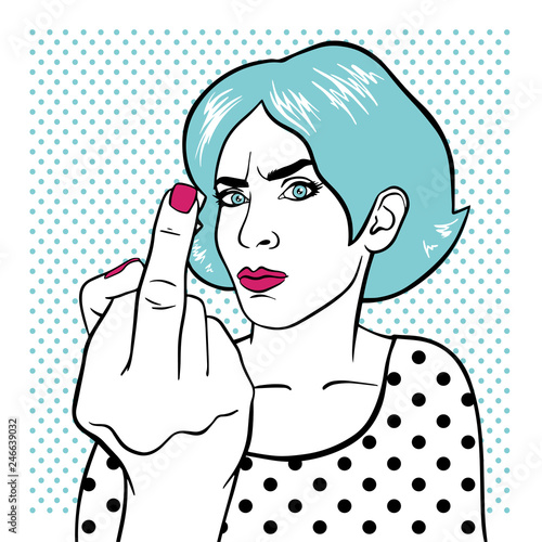 Vector illustration of beautiful surprised woman holding diamond ring. Happy pin-up girl in retro pop art comic style.