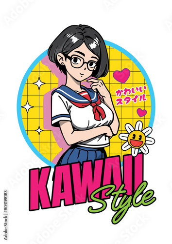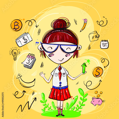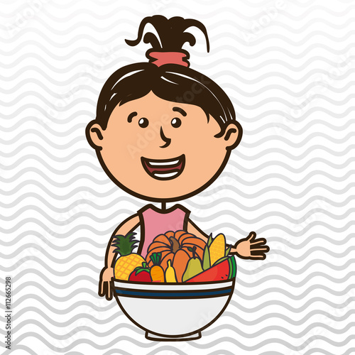 Vector illustration of woman with bundle of bagel and other pastry. Bakery concept, retro pop art comic style.