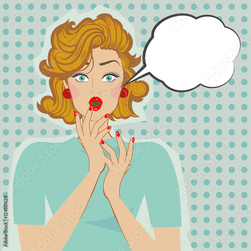 Vector illustration of beautiful woman with sweet candy. Pin-up girl portrait in retro pop art comic style.