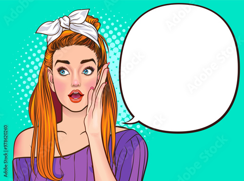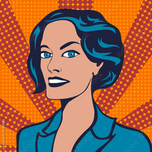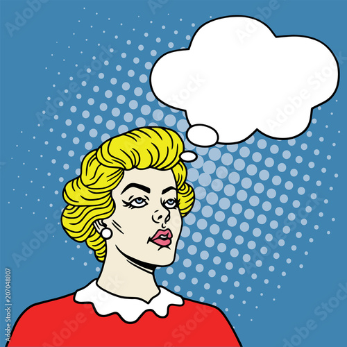 Vector illustration of beautiful young woman having problems. Sad girl portrait in retro pop art comic style.
