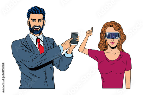 Vector pop art man in sunglasses holding credit card. Comic book vintage illustration.