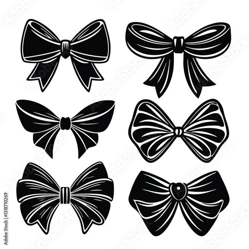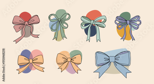 Vector set of vintage bows, ribbons in retro pop art comic style.