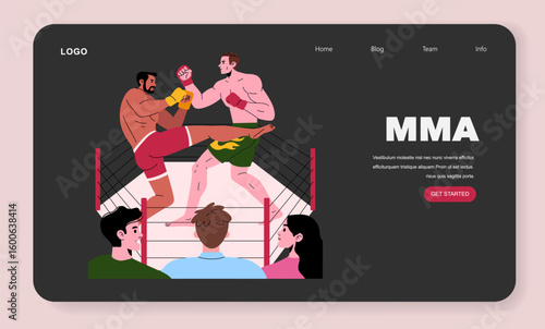 Vector poster of martial arts. Kudo. Fighters in sport positions. Flat design.
