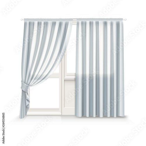 Vector window curtains and drapes set. Realistic illustration isolated on white background.