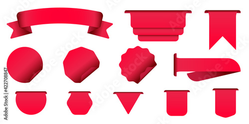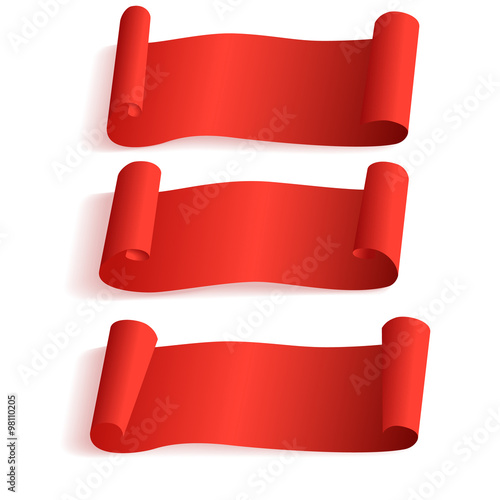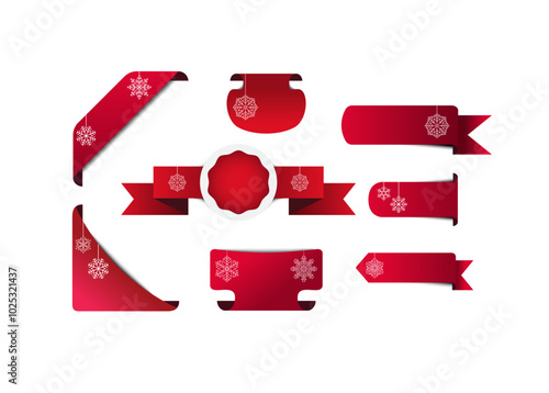 Vector set of paper winter holidays and winter sale banners. Red realistic ribbon banners with snow.