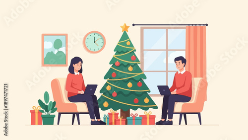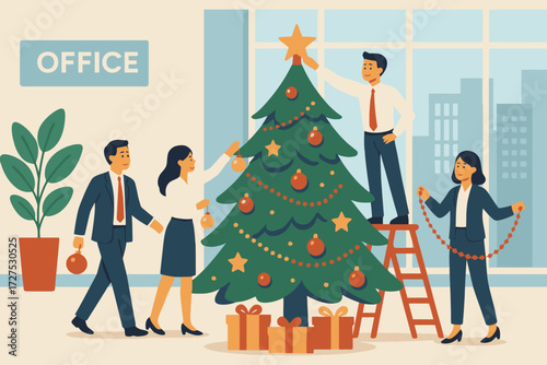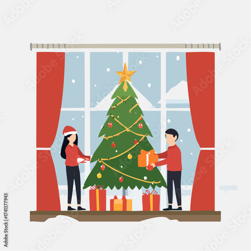 Reception in restaurant concept vector illustration in flat style. Restaurant interior and visitors man and woman near table with drink