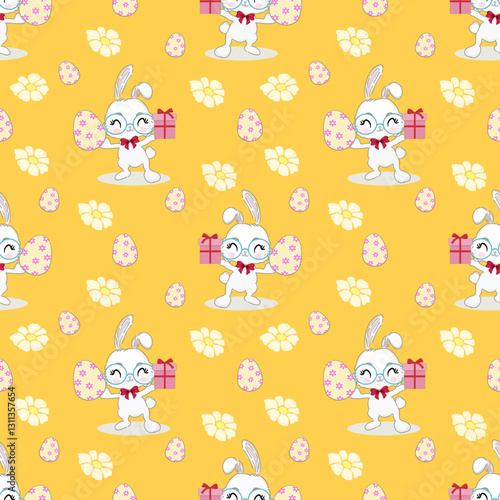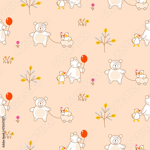 Vector seamless pattern with cute owl, hedgehog and deer in love holding flowers and hearts. Happy romantic animals background, wallpaper, fabric, wrapping paper.