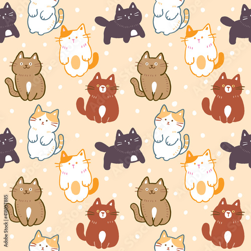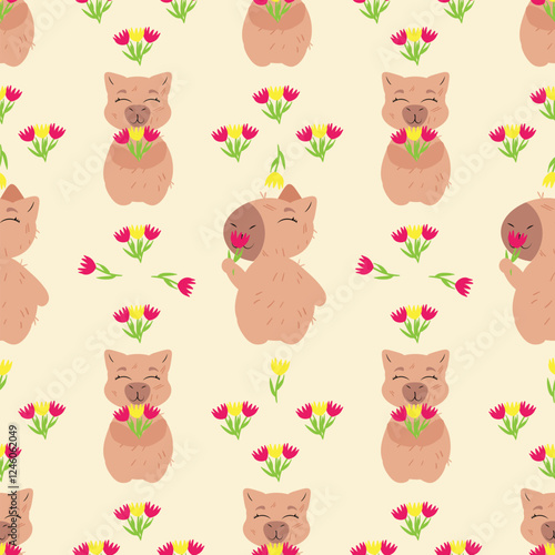 Vector seamless pattern with cute loving foxes and owls. Happy romantic animals couples background, wallpaper, fabric, wrapping paper.