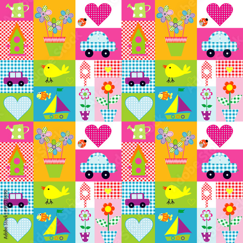 Vector seamless pattern with cute cats and autumn leaves. Funny autumn cats background, wallpaper, fabric, wrapping paper.