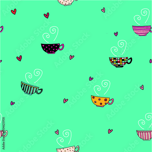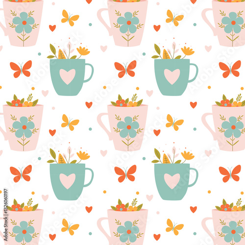 Vector seamless pattern with cute succulent kawaii cacti with funny faces in pots. Floral cactus background, wallpaper, fabric, wrapping paper.