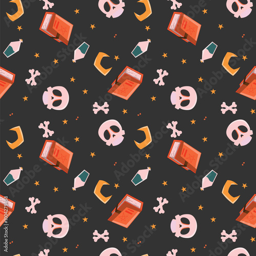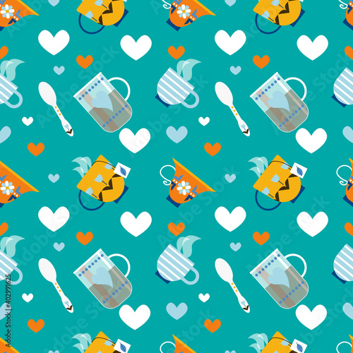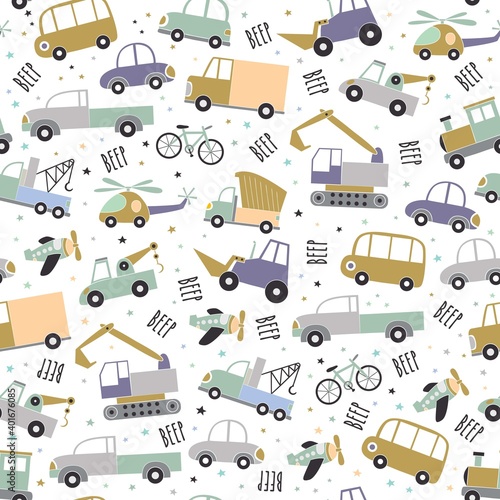 Vector seamless pattern with cute raccoon eating popcorn. Funny raccoon background, wallpaper, fabric, wrapping paper.
