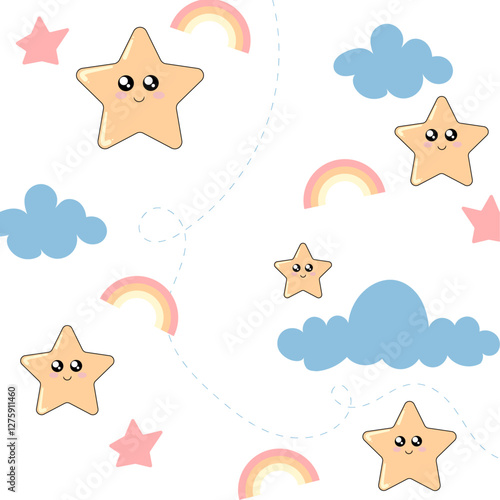 Vector seamless pattern with cute foxes flying in the sky. Funny animals background, wallpaper, fabric, wrapping paper.