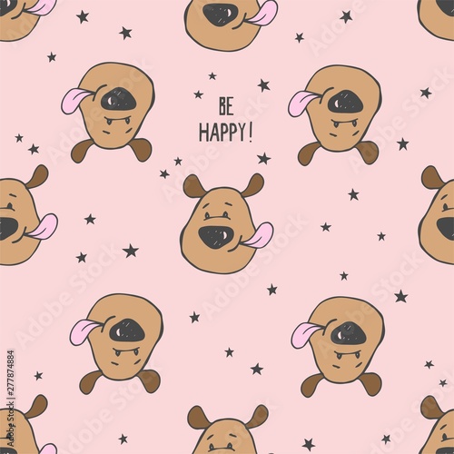 Vector seamless pattern with cute sloths hanging upside down from tree branch, sitting in yoga position, listening to music. Funny sloth background, wallpaper, fabric, wrapping paper.