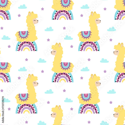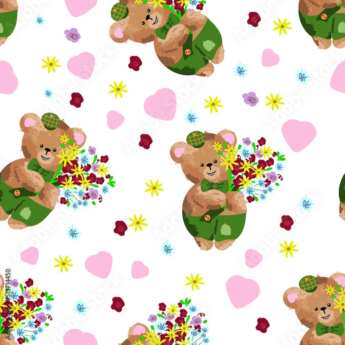 Vector seamless pattern with cute squirrel and hedgehog, spring flowers and birds. Funny spring animals background, wallpaper, fabric, wrapping paper.