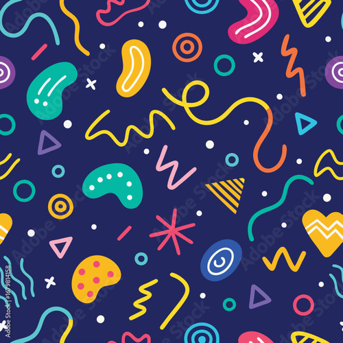 Vector vintage seamless pattern with love badges and patches. Cute heart, lips, unicorn, diamond, rainbow, star fashion decorative symbols.