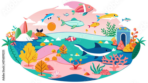 Vector seamless pattern with pirate accessories and marine animals. Jellyfish in eye patch, crab, fish, starfish, treasure chest and skull. Childish pirate background wallpaper fabric wrapping paper.