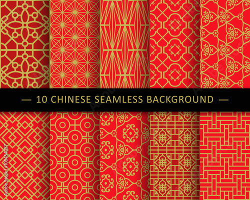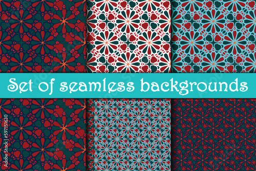 Vector set of 10 seamless mosaic patterns. Arabic tile texture with geometric ornament. Decorative and design elements for textile, book covers, manufacturing, wallpapers, print, gift wrap.