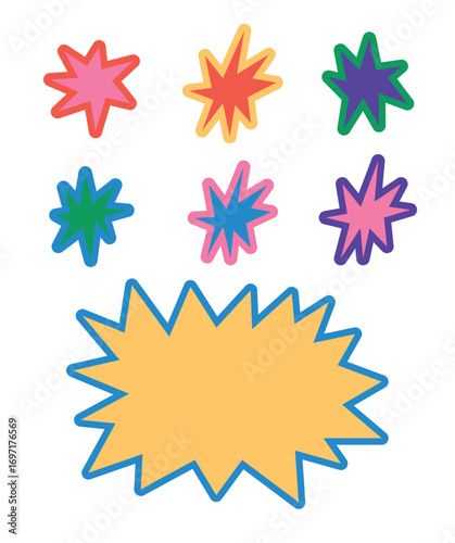 Vector set of abstract explosions in comic pop art style. Vector illustration. Design elements.