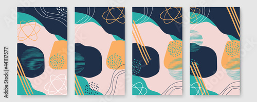 Vector set of abstract hand painted backgrounds for social media stories design, wall decoration pattern, modern poster, prints. Abstract background illustrations.
