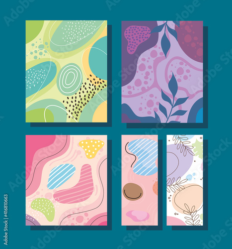 Vector set of abstract hand painted backgrounds for social media stories design, wall decoration pattern, modern poster, prints. Abstract background illustrations.