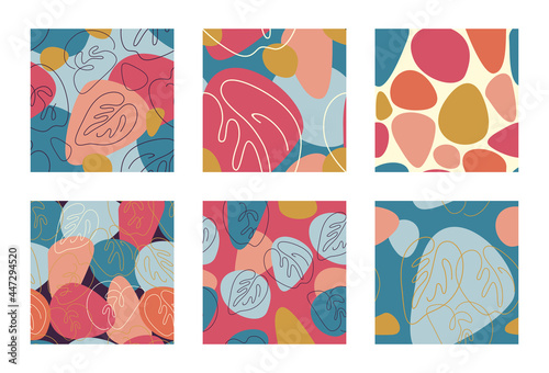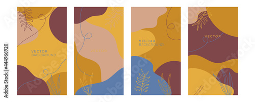 Vector set of abstract hand painted backgrounds for social media stories design, wall decoration pattern, modern poster, prints. Abstract background illustrations.