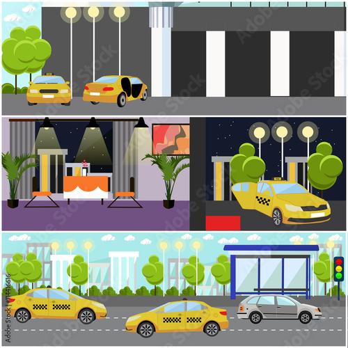 Vector set of aged people posters, banners. Elderly people at home, doing shopping, walking in park flat style design elements.