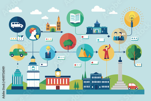 Vector set of amusement park concept posters, banners. Amusement park area with ferris wheel, shooting range attractions, food stalls, trolley and people having rest design elements in flat style.