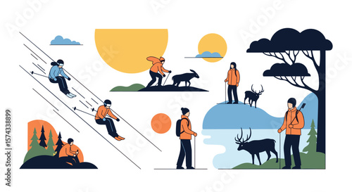 Vector set of archaeological excavations concept posters. Calculations, Ancient artifacts, Excavations and Research design elements in flat style
