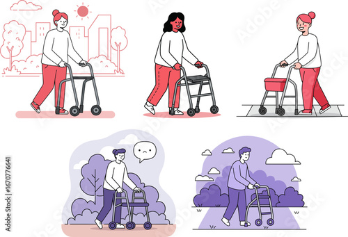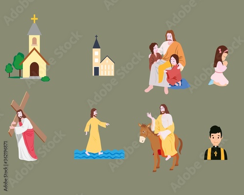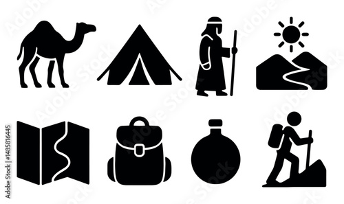 Vector set of wild north arctic people and animals icons isolated, flat style design elements. Eskimo characters fishing, cooking on the open fire, playing drum and dancing.