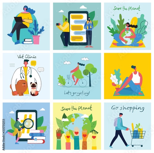 Vector set of art and craft posters, banners. Music, dancing, painting, house painting, ceramics, shoemaking, sculpting and clothing design concept in flat style.