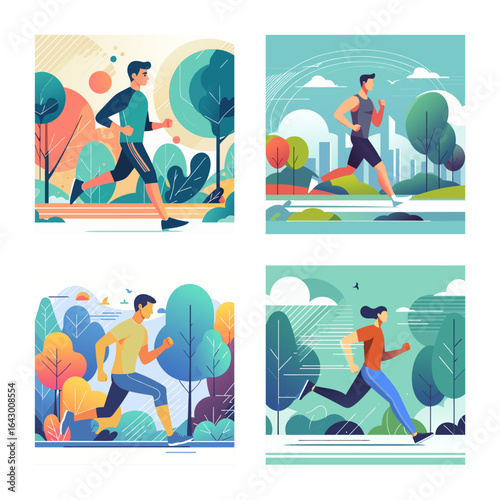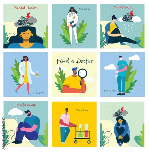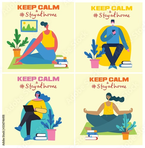 Boys and girls playing electric guitar and piano on stage. Young man playing acoustic guitar near campfire. Vector set of banners with young musicians, flat style