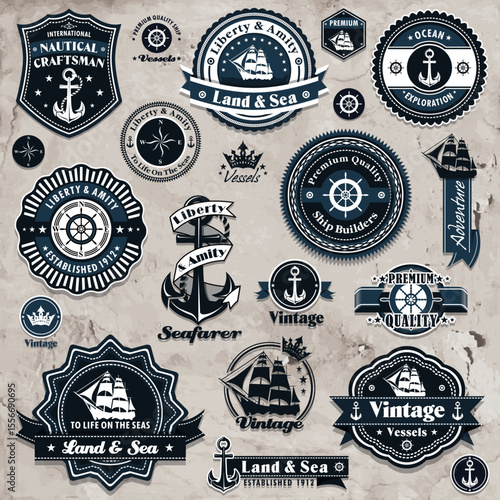 Bicycle service badge label logo set. Vector monochrome illustration in retro style. Bicycle rent, shop and repair typography.